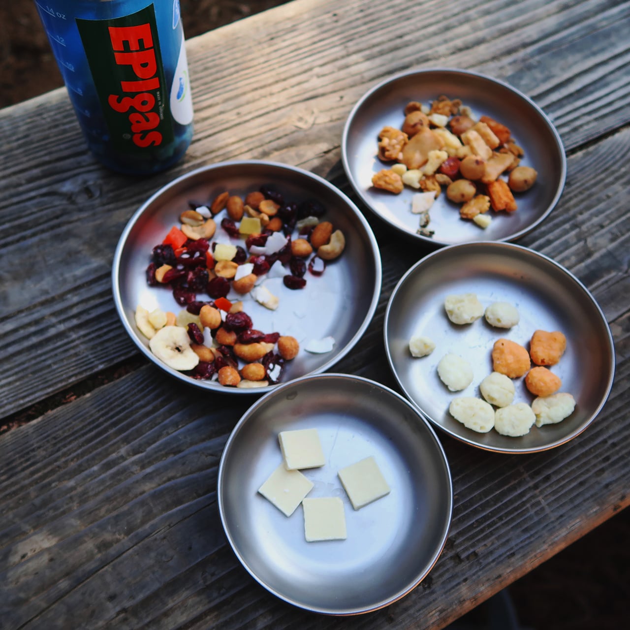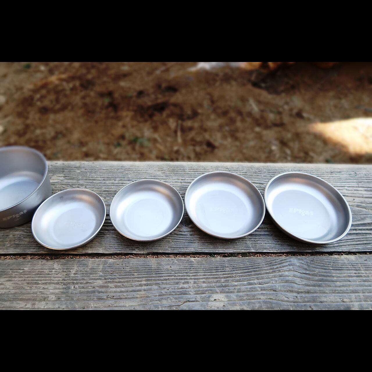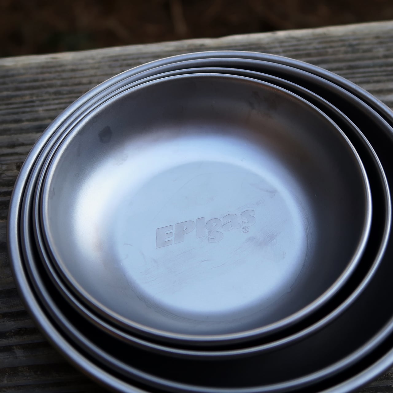メインのクッカーや食器と共に使用すると便利なチタンの平皿です。浅いお皿に盛りつけたいときや、複数で料理をシェアするときに便利。