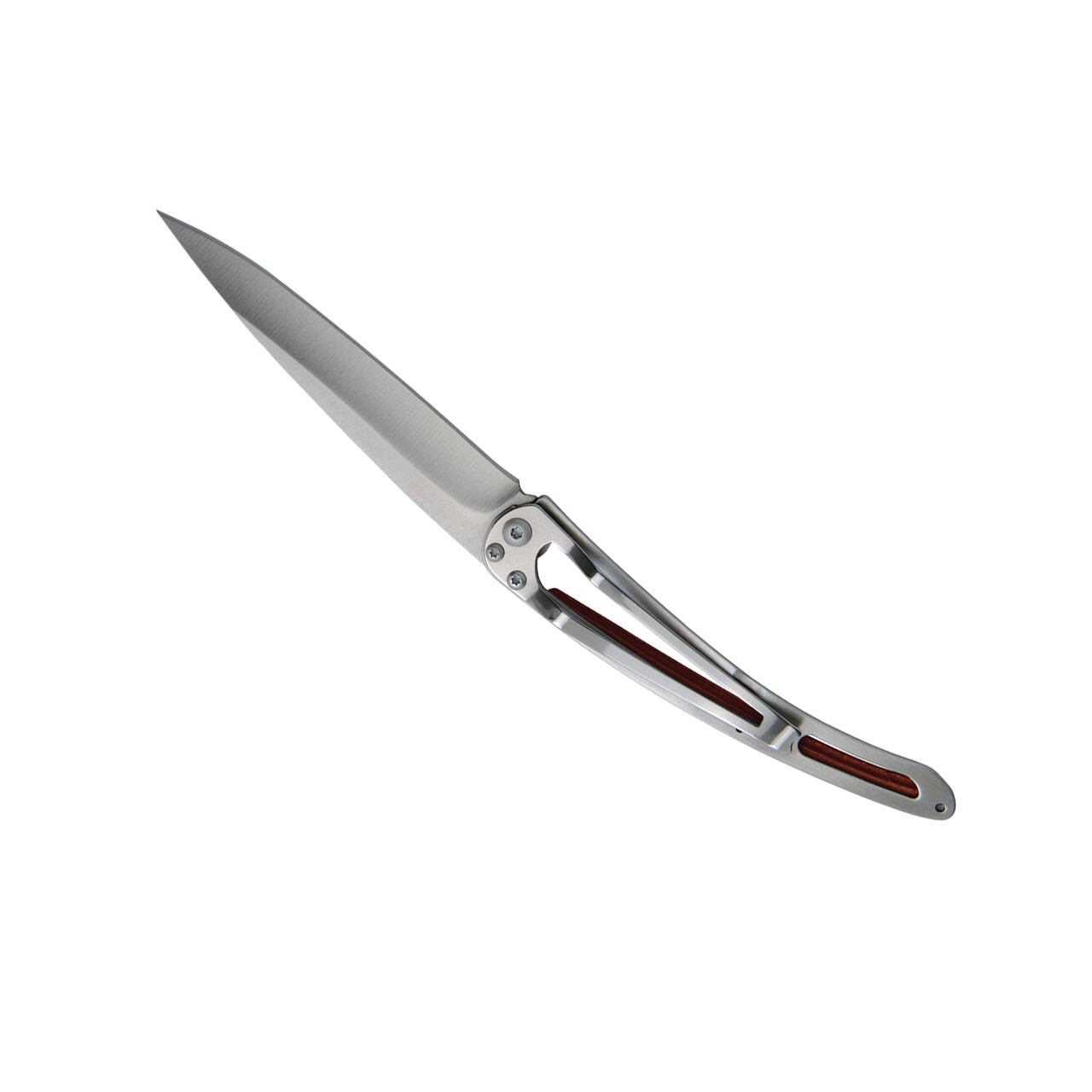 2010 年、ステファン・ルボーは、シンプルな手紙と同等の重さの超軽量ポケットナイフを設計、発明しました。超軽量のこのナイフはポケットにすっぽり収まり、毎日の装いにエレガントなアクセサリーとして添えられますが、それでも快適に使用できます。ミニマリストな外観とテーブルナイフの機能的な寸法を完璧に両立しています。重さで名付けられた Deejo ナイフは、サイズや素材が軽いのではなく、デザインが軽いのです。
