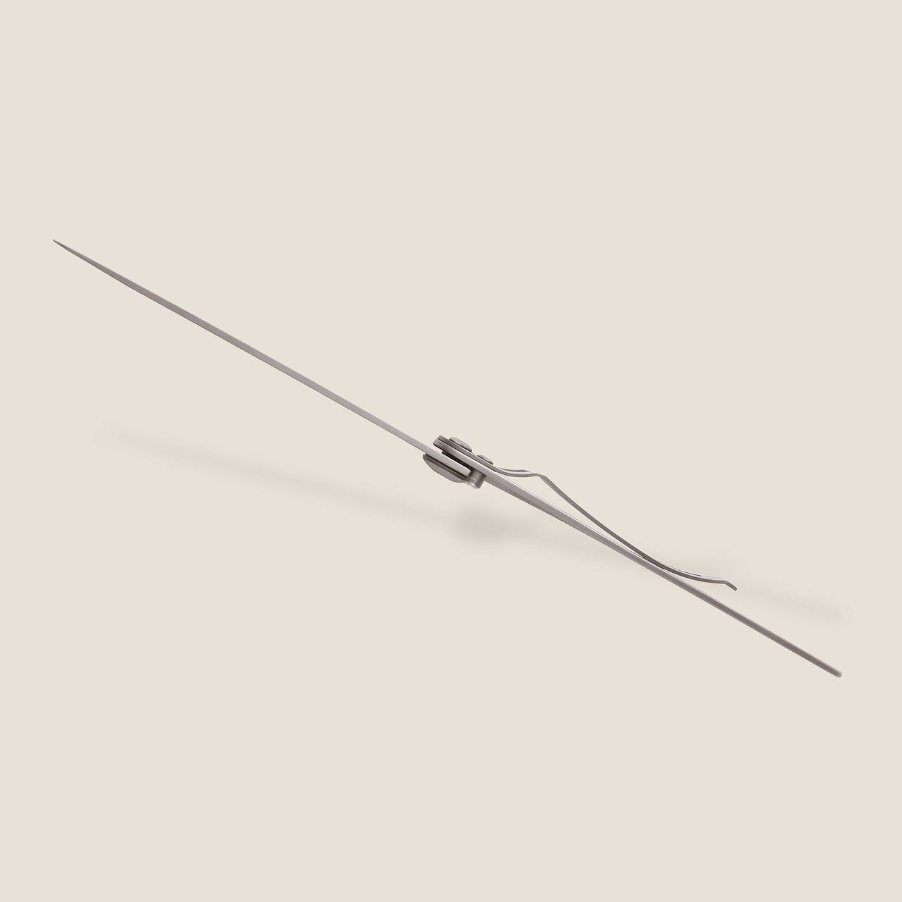 グレーのチタンをステンレススチールのベースに固定することで得られるこの仕上げには、2 つの利点があります。まず、衝撃や傷に対する表面の耐性を強化し、次に、ナイフの純粋なラインを崇高なものにし、極限まで高めた節度を表現します。控えめな仕上げで、スチールは年月とともにわずかに緑青を帯び、この美しいカトラリーをさらに引き立てます。