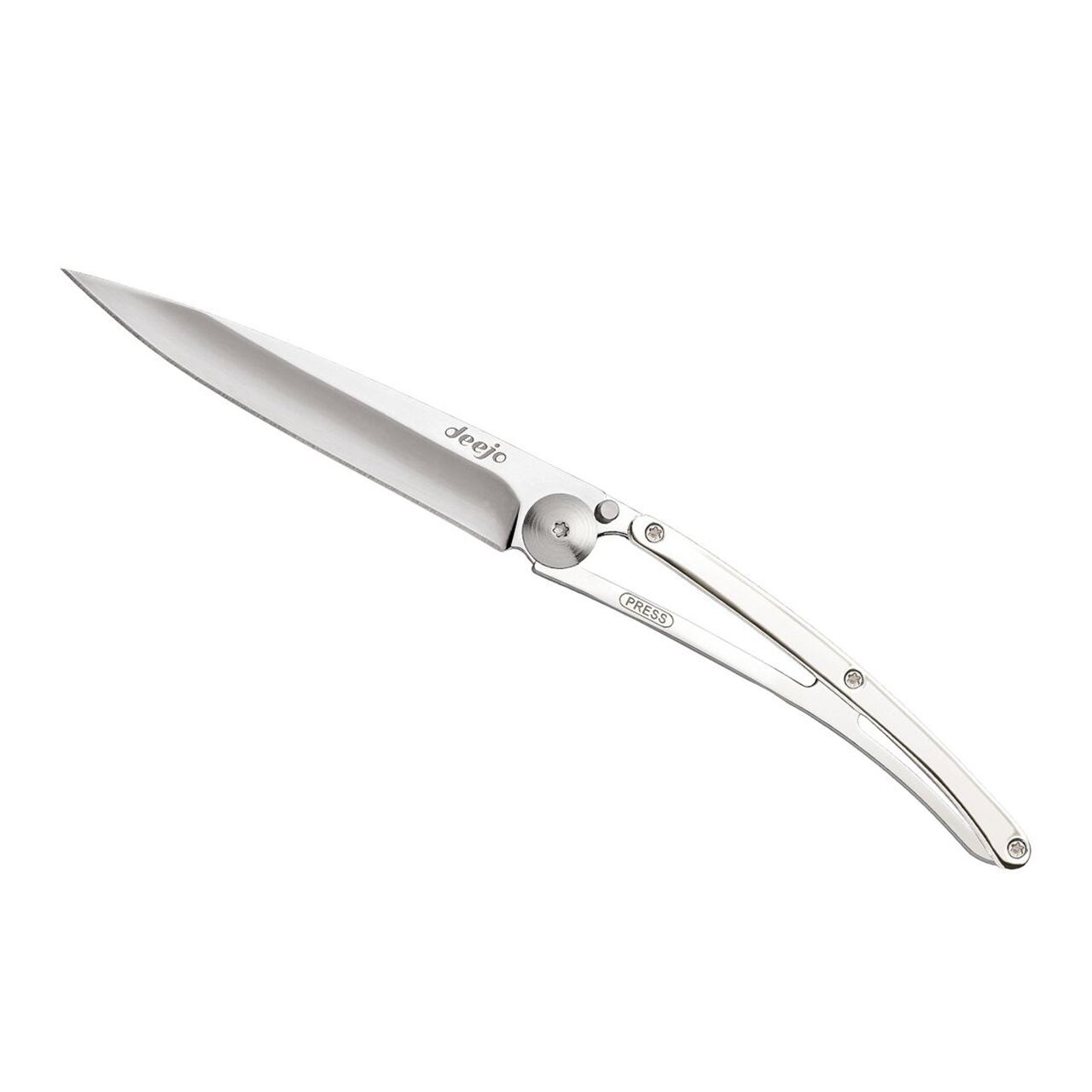 2010 年、ステファン・ルボーは、シンプルな手紙と同等の重さの超軽量ポケットナイフを設計、発明しました。超軽量のこのナイフはポケットにすっぽり収まり、毎日の装いにエレガントなアクセサリーとして添えられますが、それでも快適に使用できます。ミニマリストな外観とテーブルナイフの機能的な寸法を完璧に両立しています。重さで名付けられた Deejo ナイフは、サイズや素材が軽いのではなく、デザインが軽いのです。